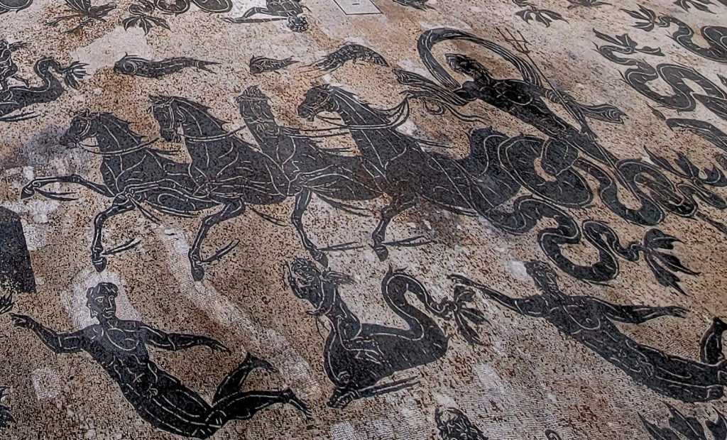 But the monumental temples are only a small part of the Ocean of Paganism. Paul is surrounded by images of Griffins, Neptune (another god), tritons, gods galore. Massive murals of scenes from Homer and scenes from the Dionysius Mysteries.