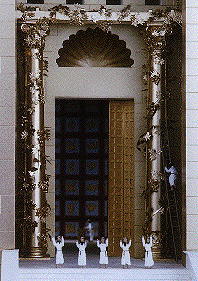 Looking over the Courts of Women and Israel and Priests to the opening of the sanctuary which contains the Holy of Holies