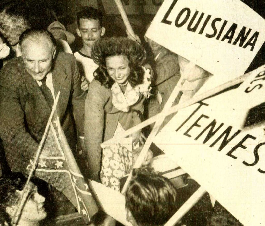 In 1948, Harry S. Truman was nominated as the Democratic candidate. Truman adopted a plank in his platform the demand of civil rights for African Americans. Thirty-five Southern delegates withdrew from the Democratic Convention and formed the counter party called The State’s Rights Democratic Party or popularly known as Dixiecrats. They held their convention in Birmingham, Alabama calling for the preservation of Jim Crow laws and white supremacy. They adopted the Confederate flag as their official party symbol. The flag was certainly heritage, the heritage of white supremacy. The Dixiecrats knew it and so did everyone else.